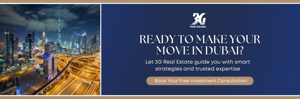 Dubai remains a city of opportunity — and the right investment, with the guidance of a real estate consultancy UAE agency like 3G, you can enjoy strong returns for years to come.